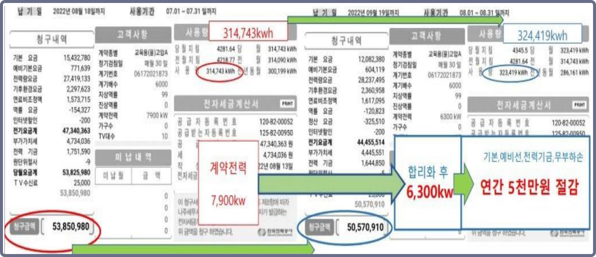 한전수전합리화사업단(대표:맹종섭)은 고객의 기존 전기 사용 패턴과 수변전 설비 운영 실태를 정밀 분석하여,